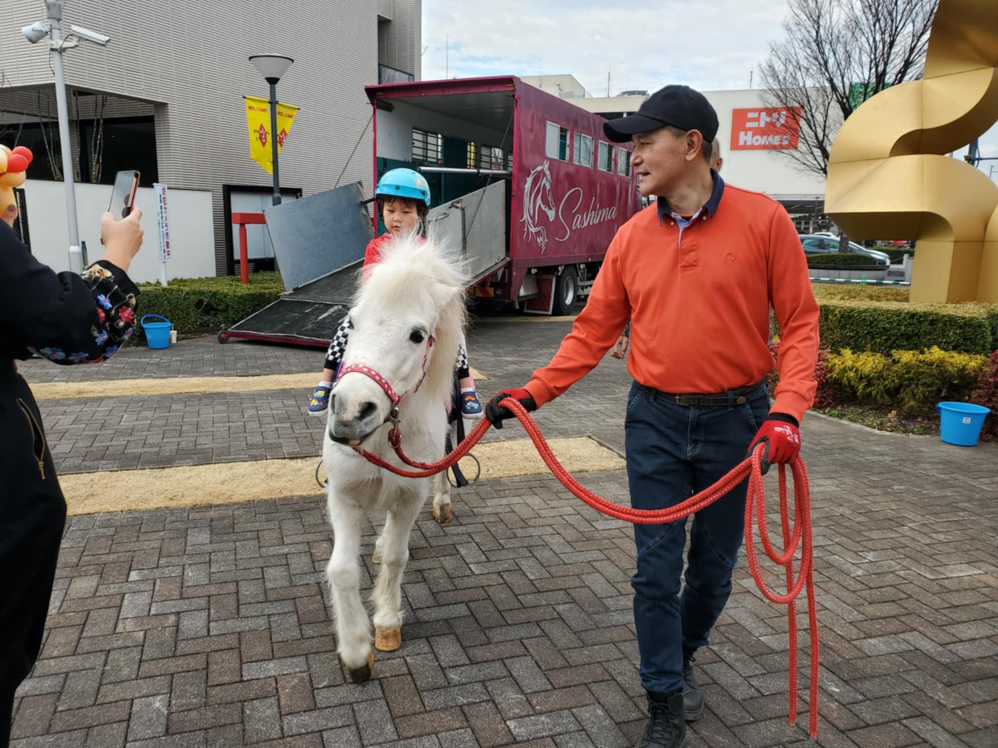 ポニーは体高142cmまでの小型馬の総称です。ミニチュアホース・シェットランドポニー・在来種の木曽馬など色々な種類がいます。1日の乗せられる人数は馬のサイズ、運用方法等によって異なります。移動動物園とのセットや、白馬指定・甲冑乗馬体験などメニューもございます。詳しくはお問い合わせください。