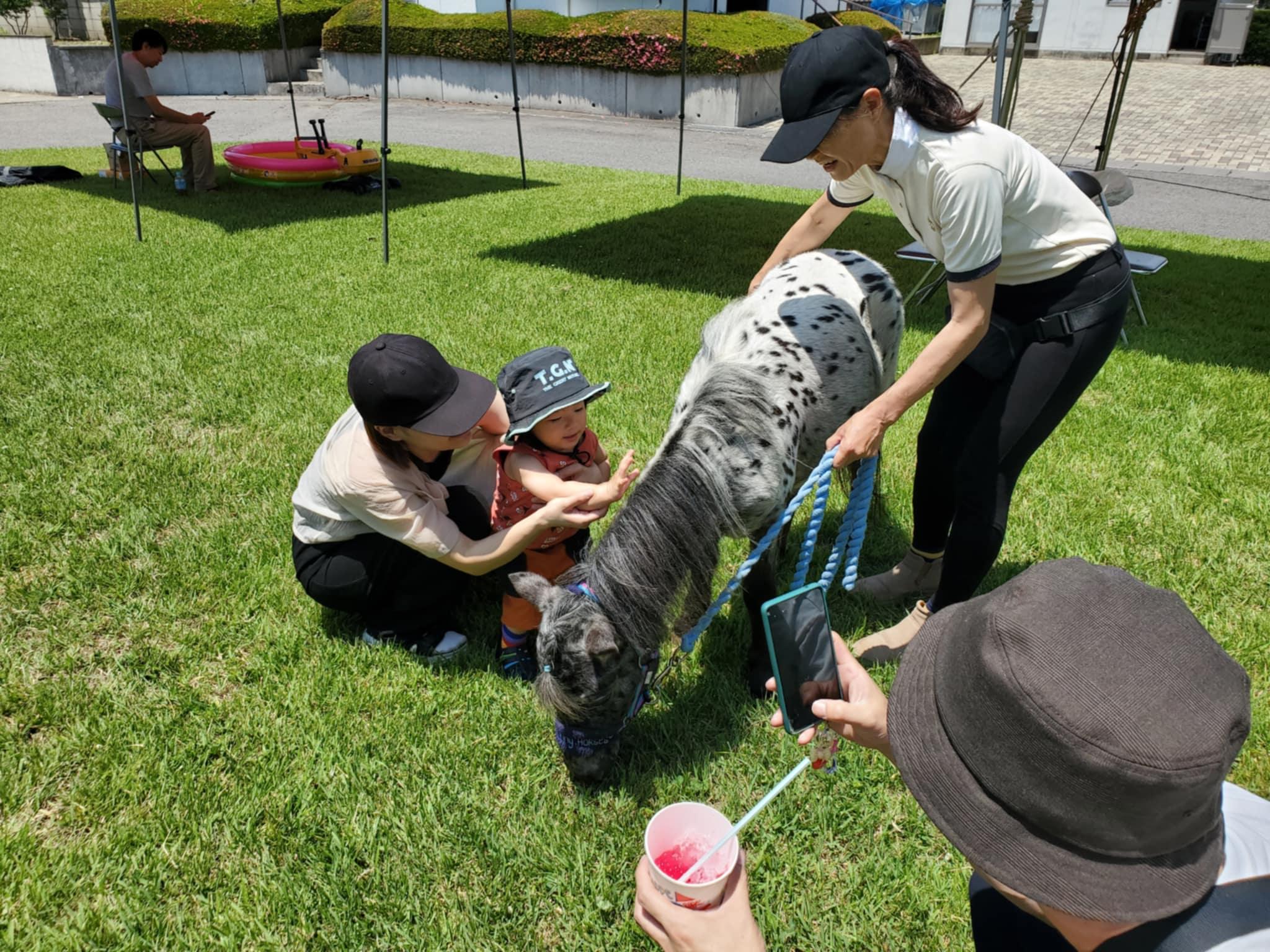 かわいいミニチュアポニーとのふれあいやえさやり体験。お散歩体験など